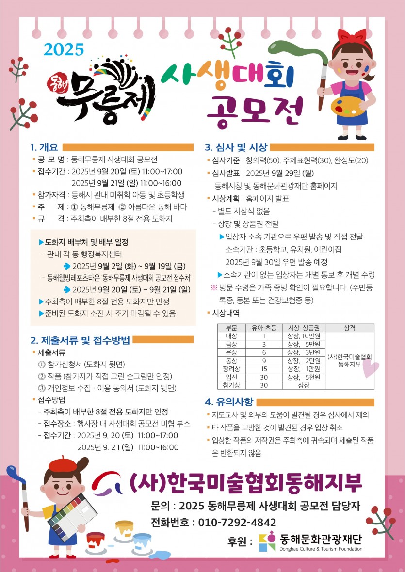 ※시상계획 : 동해시청 및 동해문화관광재단 홈페이지 발표(별도 시상식 없음)